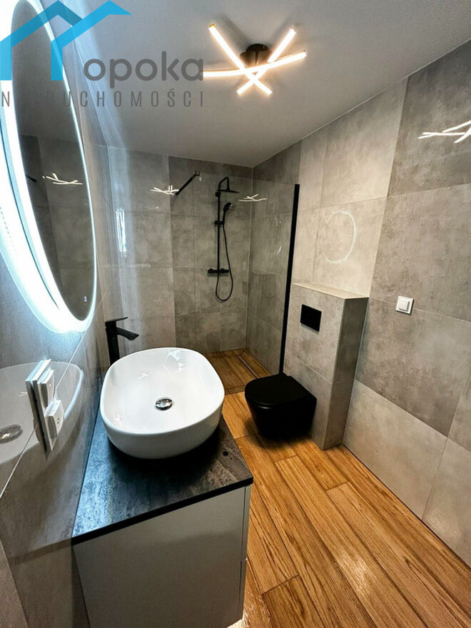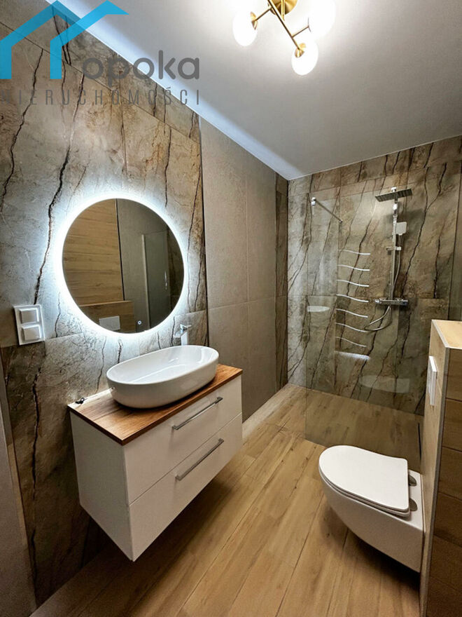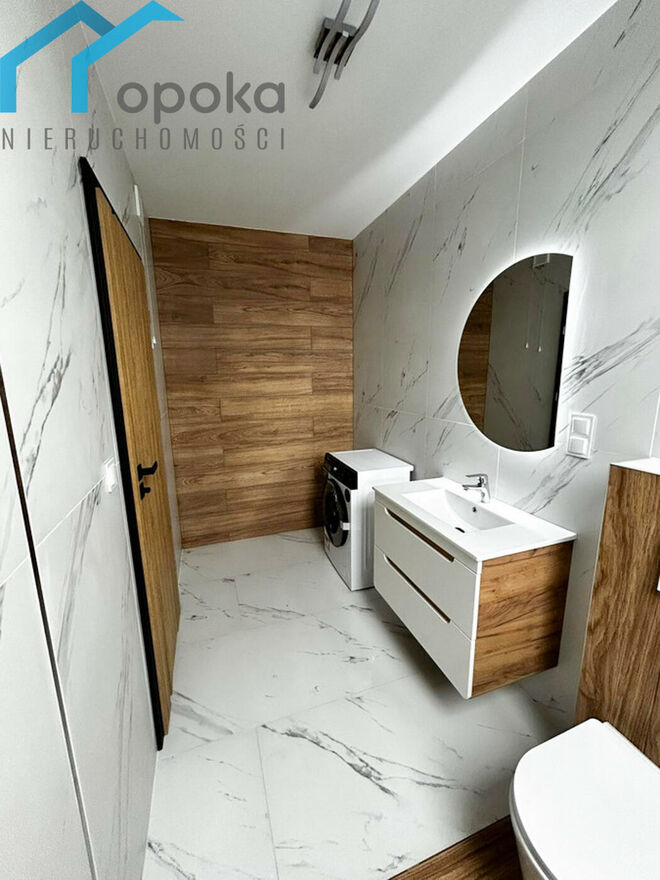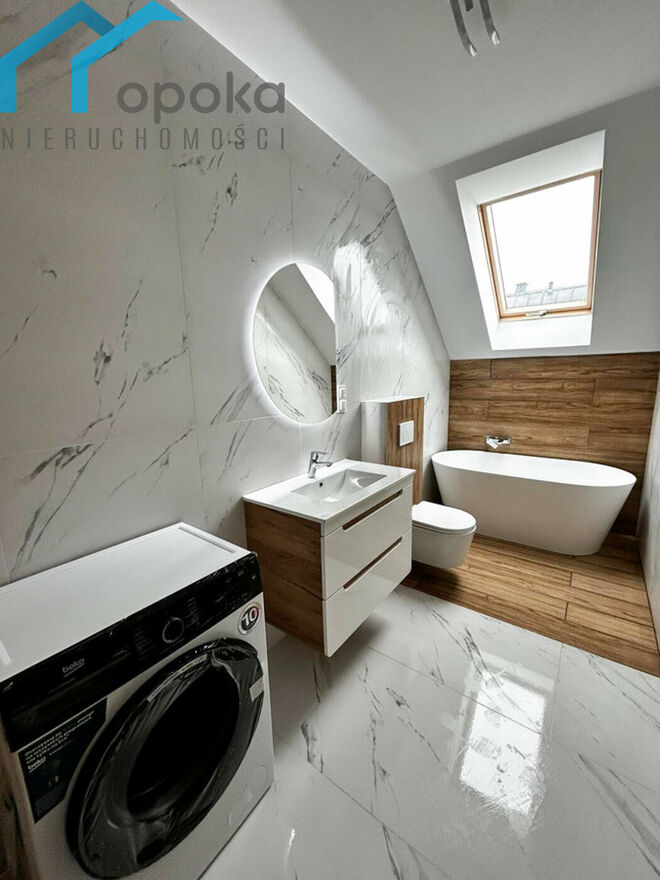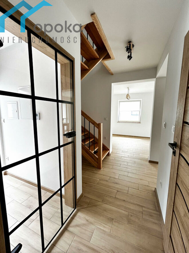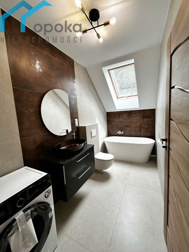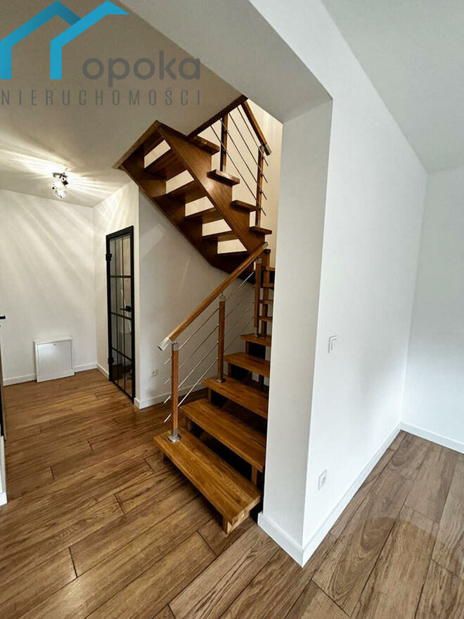 Standard: Wykończenie pod klucz, meble kuchenne na wymiar z AGD, dwie kompletnie wyposażone łazienki (z pralką), schody drewniane.