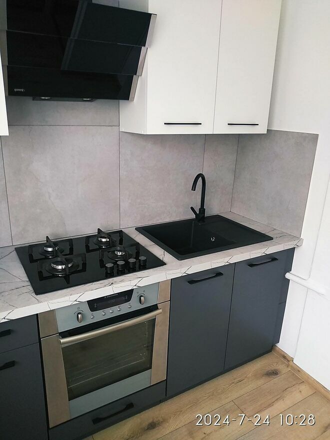 Kuchnia- wyposażona jest w nowe meble zrobione na wymiar, kuchenka gazowa wraz z piekarnikiem elektrycznym, pochłaniacz, lodówko-zamrażarka, zlew kamiennym wraz z armaturą, okna plastikowe, w oknach żaluzje, na podłodze nowe panele, nowa instalacja elektryczna oraz wodno-kanalizacyjna, kaloryfer z nowym podzielnikiem pomiarowym, wygipsowana i odmalowana.