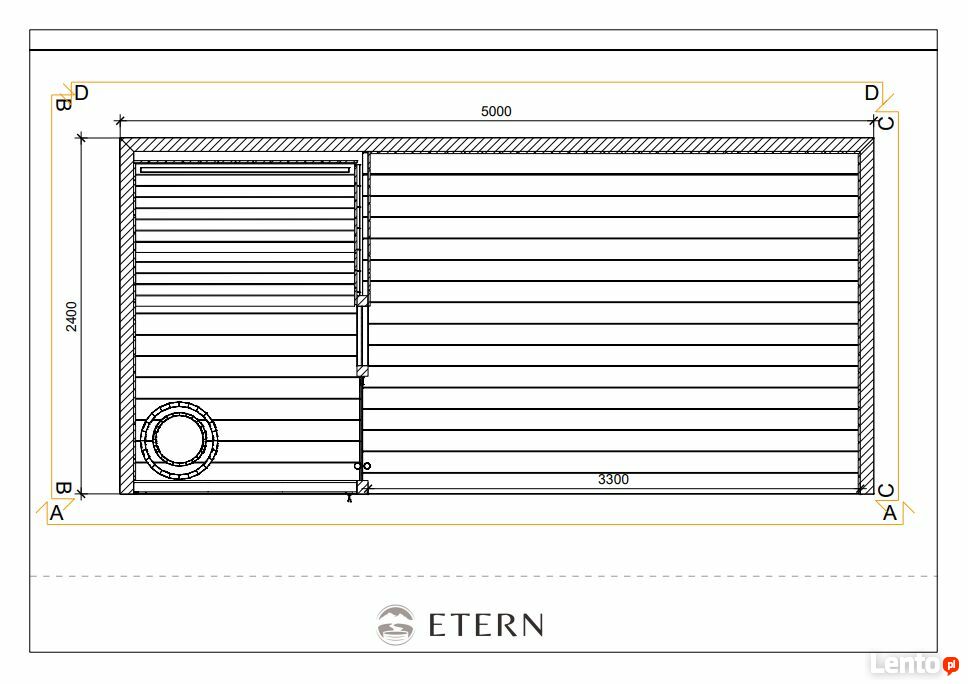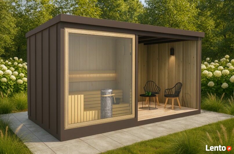 Sauna ogrodowa premium z wiatą - 500x245x230cm -wizualizacja