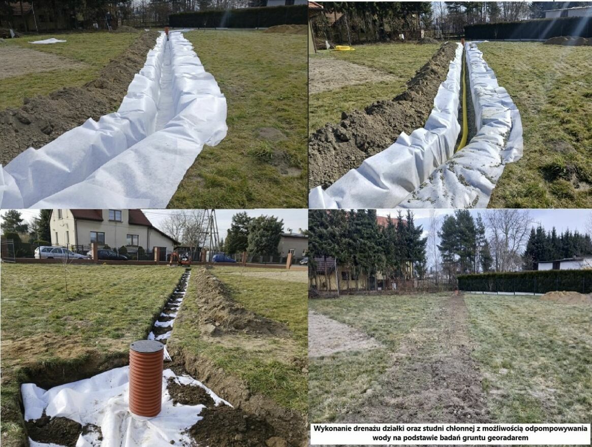 Drenaże działek, fundamentów, montaż studni chłonnych